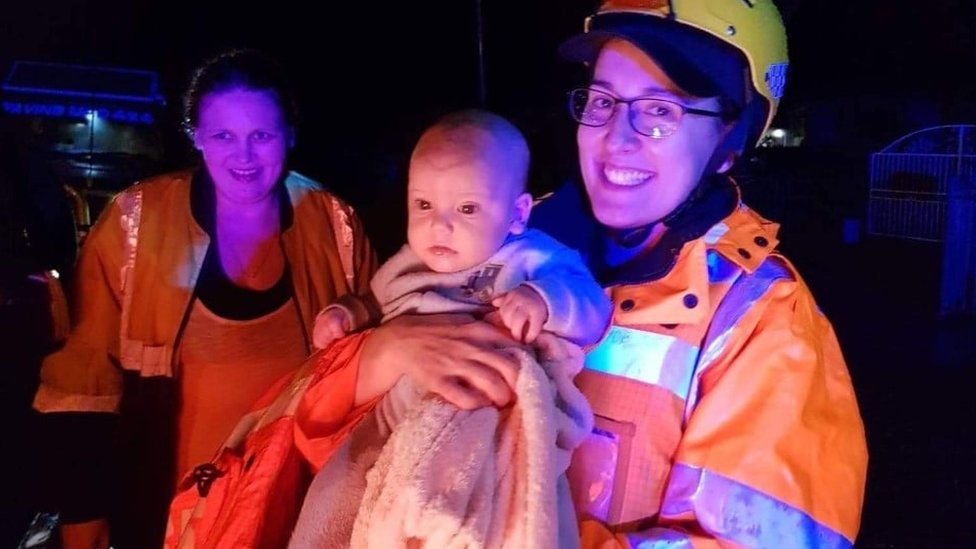 This infant was rescued alongside another child, four adults and three dogs in Sydney’s west