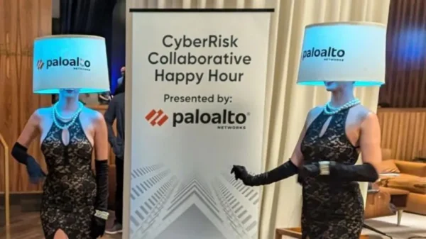The largest cybersecurity company in the US has apologised for using two women posing with company-branded lampshades on their heads at a trade event...