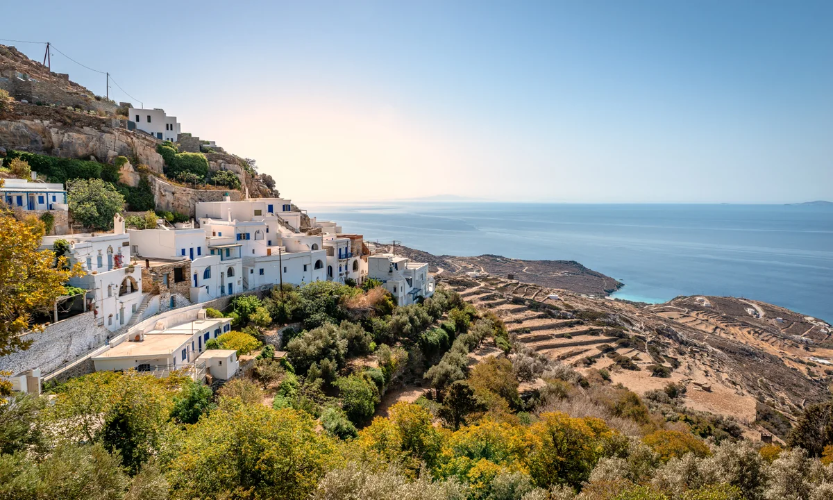 An hour’s ferry ride from Santorini, Folegandros has just three villages and sandy beaches that are blissfully lounger-free, many accessible by boat from Karavostasi port. The medieval main town is set 200m above sea level and is one of the oldest and most picturesque in the Cyclades – a cluster of cottages wrapped around bougainvillaea-draped squares. Stay at the Anemi, an elegant design hotel.