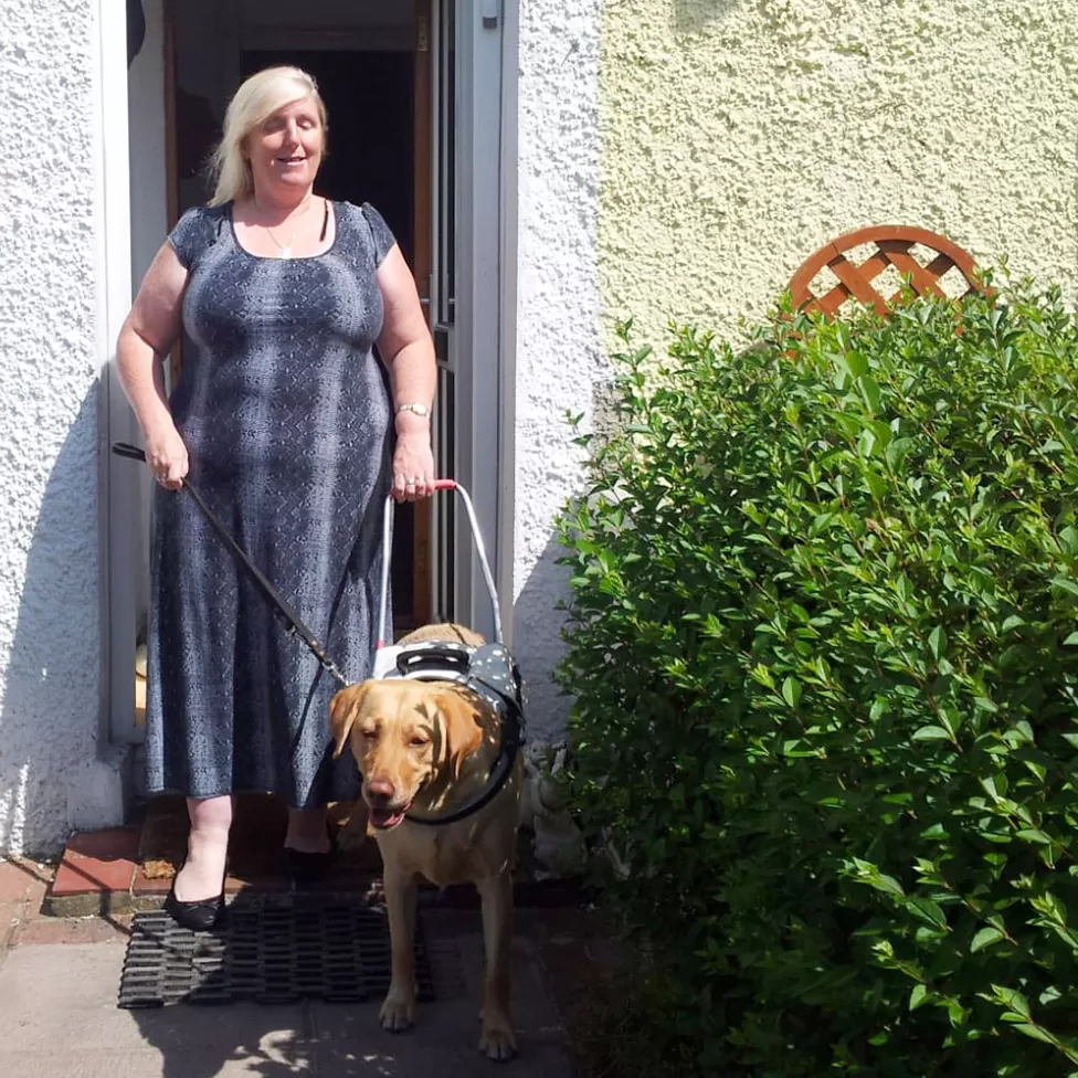 Back in London, Isabel ventured out with Lucy. She had bought a harness and, armed with her trusty cane which she used at the same time, they started walking the street they lived on.