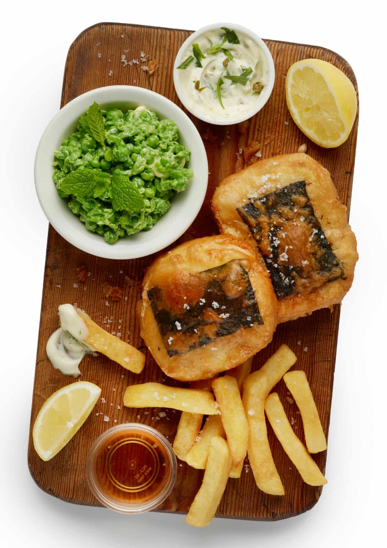 That said, fish does taste, well, fishy, and the best way to recreate this with plant-based ingredients is to make use of a plant that grows in the same environment, namely seaweed. It’s common to use a sheet of nori (dried laver) to act as the “skin”, which is a nice idea even if you’re northern and shudder at the thought of skin on battered fish, but Jules’ notion of using seaweed flakes to season between the flakes ensures you get the flavour in every bite.