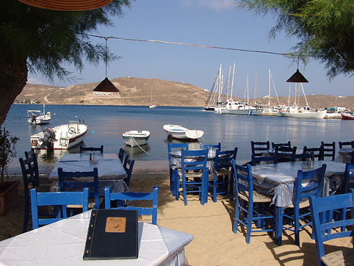 Located in Platis Gialos, Nikoulias Restaurant has a traditional feeling with blue colored tables and chairs by the sea. You can enjoy fresh seafood delicacies, juicy meats from the grill and the local Serfiotiko wine.