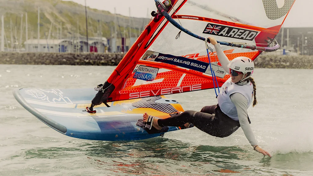 Pumping the sail to gain speed, windsurfer Alice Read lifts out of the water and glides across the sparkling blue of Portland Harbour. The only sounds are the wind and the quiet buzz of her hydrofoil. When she turns, I barely notice her crossing the board, her movements fluid as the water itself. She reaches for the surface with the fingertips of one hand, spray fizzing into the air as she swoops past. She is so close she could touch the boat I’m sitting in. Effortlessly, Reed comes to a stop, resting for a moment to catch her breath.
